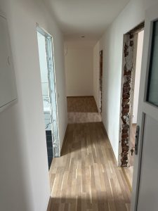 Durch einen kleinen Flur mit Abstellmöglichkeit gelangt man zum Badezimmer mit Dusche und in die 2 getrennten Schlafräume. Eines der Schlafzimmer bietet die Möglichkeit, sich den Traum eines eigenen Ankleidezimmer zu ermöglichen. Am ende des Flur betritt man den offenen Wohnbereich, welcher direkt an die Küche grenzt.